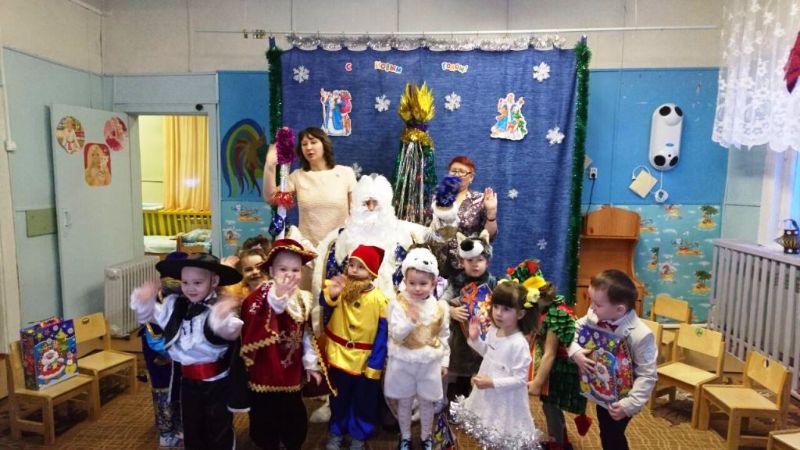 Вторая младшая группа: "Новогодняя сказка" - к детям на утренник попал Емеля. И все перепутав, вместо Снегурки вызвал Метель, которая замела все дорожки и тропинки. Вместе с детьми - героями исправляет все свои ошибки. Пингвины и гномы чистят тропинки (танцы), снегири освещают дорогу (танец). Помогают Деду Морозу. Первый раз были родители на утреннике. Дети - большие молодцы. Не подвели, не плакали (воспитатели волновались именно за это, что побегут к родителям). Читали стихи, громко пели, хороводили. В конце утренника Дед Мороз вручил всем детишкам новогодние подарки.