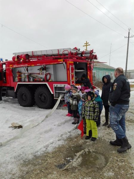 В преддверии праздника "День пожарного", дети из средне-старшей и подготовительной группы посетили пожарную часть с.Каменское. Под руководством воспитателей-А.В.Елизаровой, О.М.Кузьминой дети проделали нелегкий путь по весеннему бездорожью от здания детского сада по пожарной части. Придя на место дети с удивлением разглядывали новенькую, блестящую на солнце пожарную машину.