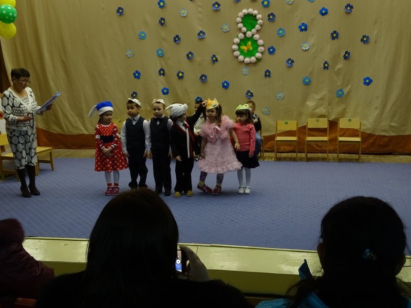 Ведущий: А чтобы запомнился праздник наш, мы дарим вам подарки. Мамы приглашаются на сцену для вручения подарков. Дети танцуют танец: «Пяточка, носочек, раз, два, три!» На этом утренник заканчивается.