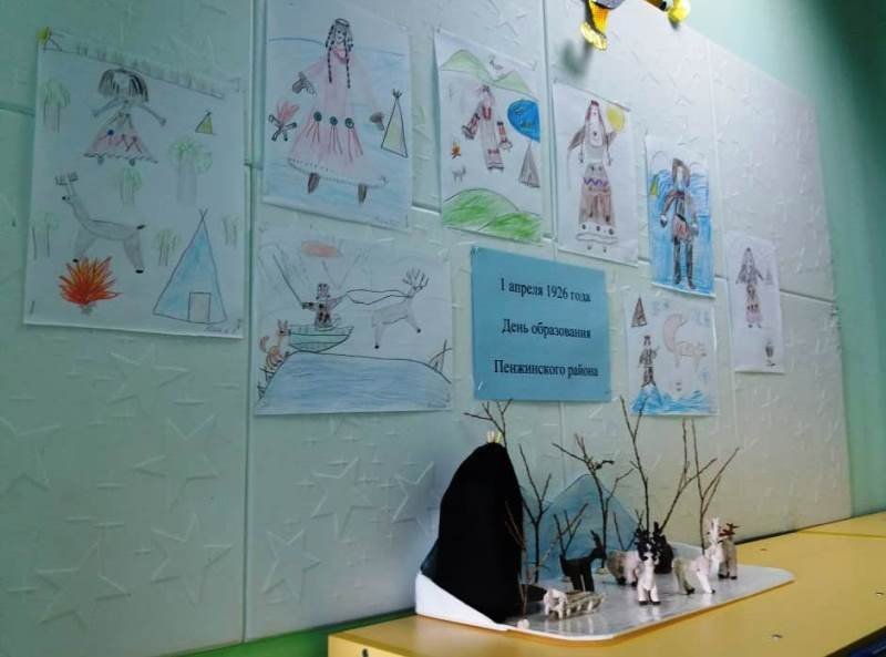 Ко Дню образования Пенжинского района дети подготовительной группы подготовили тематическую выставку рисунков и поделок о жизни и традициях коренных жителей нашего района.