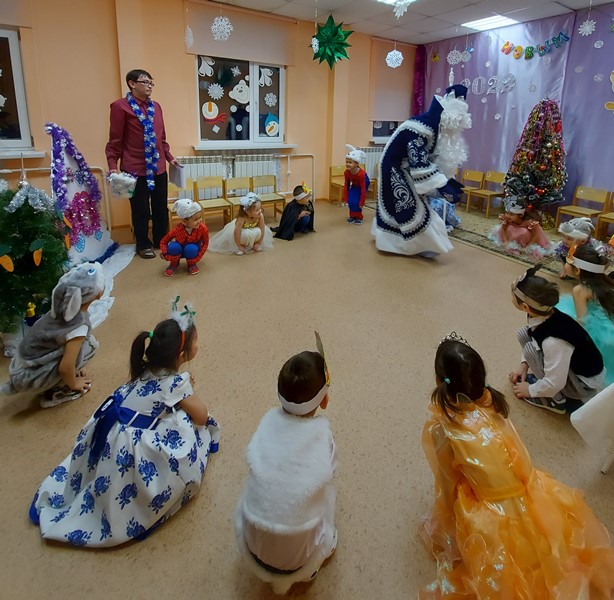 23.12.2021 г. в средне-старшей группе "Солнышко" прошел новогодний утренник. Дети пришли на утренник в новогодних костюмах, весёлые в предвкушении праздника. Сказочные герои - дети (мышка, зайчата, петушки, лисичка, медведь) участвовавшие в новогоднем представлении, проявили себя хорошими артистами, показав всё своё творческое мастерство, артистизм. Праздник прошел очень весело, задорно. Дети с удовольствием принимали участие во всех конкурсах, исполняли песни и танцевали. После представления дети читали стихи Деду Морозу и Снегурочке, фотографировались с персонажами, получали новогодние подарки.