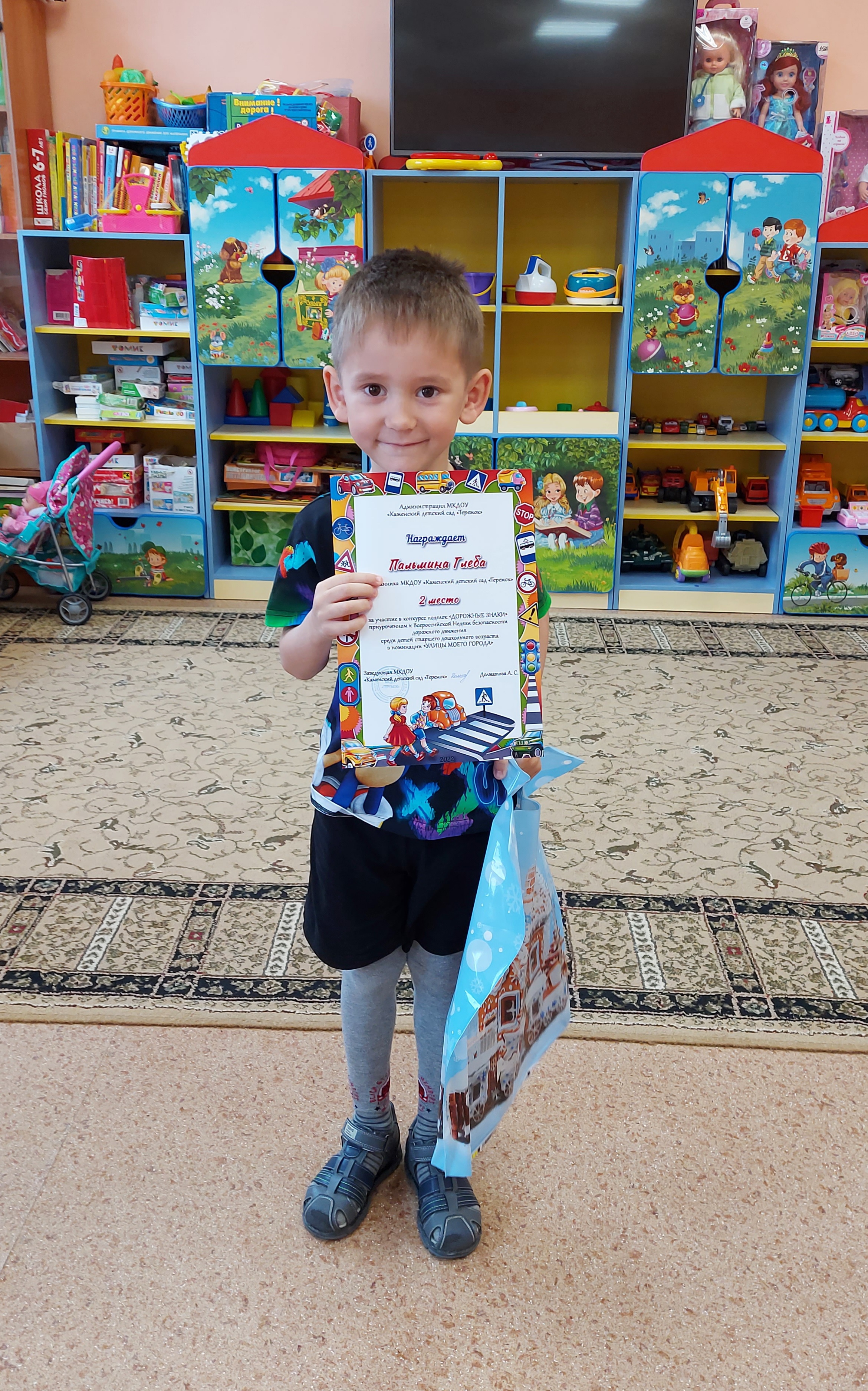Итогом недели стала выставка поделок "Дорожные знаки" (совместная работа родитель – ребенок) из природного или бросового материала. Все дети были поощрены небольшими подарками и грамотами, родителям вручили благодарственные письма.